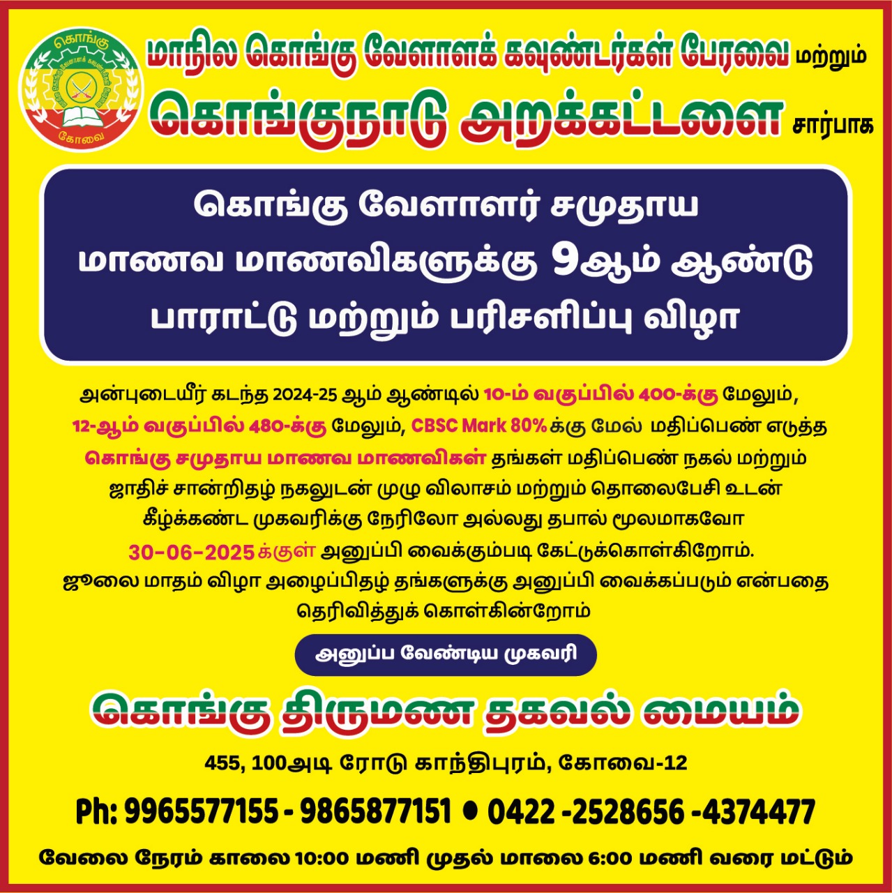 KONGU PERAVAI REGISTRATION FOR KONGU VELLALA GOUNDER COMMUNITY ONLY